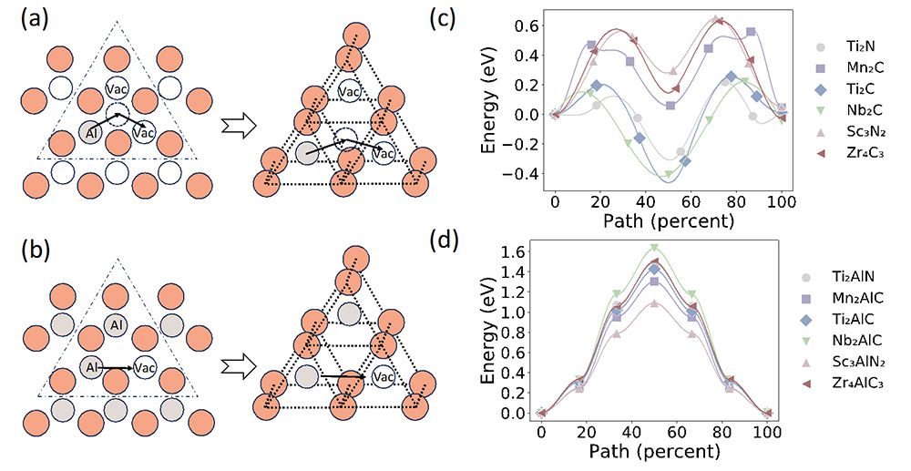 Layered carbides and their analogs with MAX phase (general formula AMn+1Xn) have emerged as promising candidates for energy storage and conversion applications. One frontier for energy storage is using MAX as an Al-ion intercalation electrode. Given that many MAXs have Al as the A sites, the structure can potentially serve as a stable host for Al intercalation. Here in this work, 425 ternary MAX Al-...