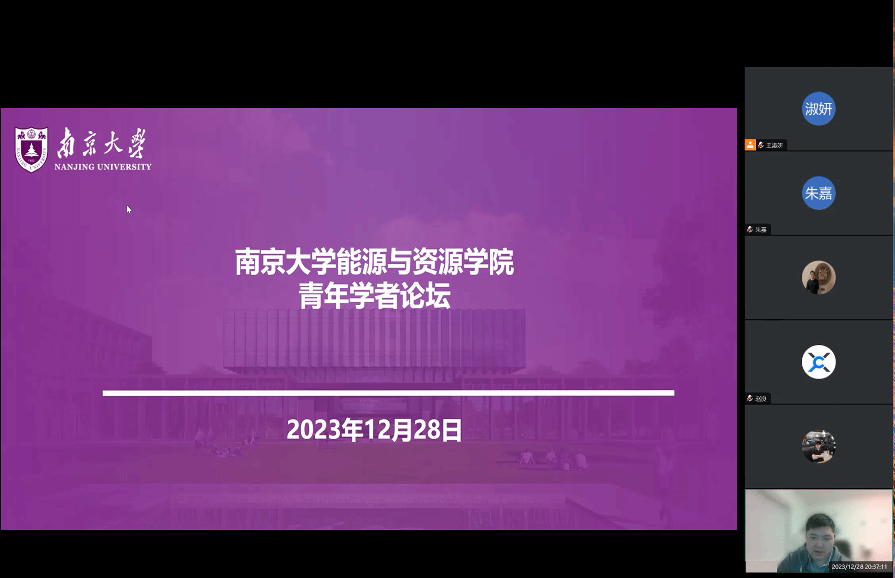 12月28日-29日,第十一届太阳成集团122ccvip诚耀青年学者论坛太阳成集团122ccvip分论坛采用线上形式召开。本次论坛邀请了世界著名高校的17位青年专家学者做特邀报告,围绕新能源转型、储能管理、碳减排、二氧化碳捕获与存储,有机分子材料、二氧化碳固存等话题展开讨论,旨在为青年学者搭建高水平的学术交流平台,为双碳目标的实现探索出更多创新思路。本次论坛由赵良教授担任主持人。