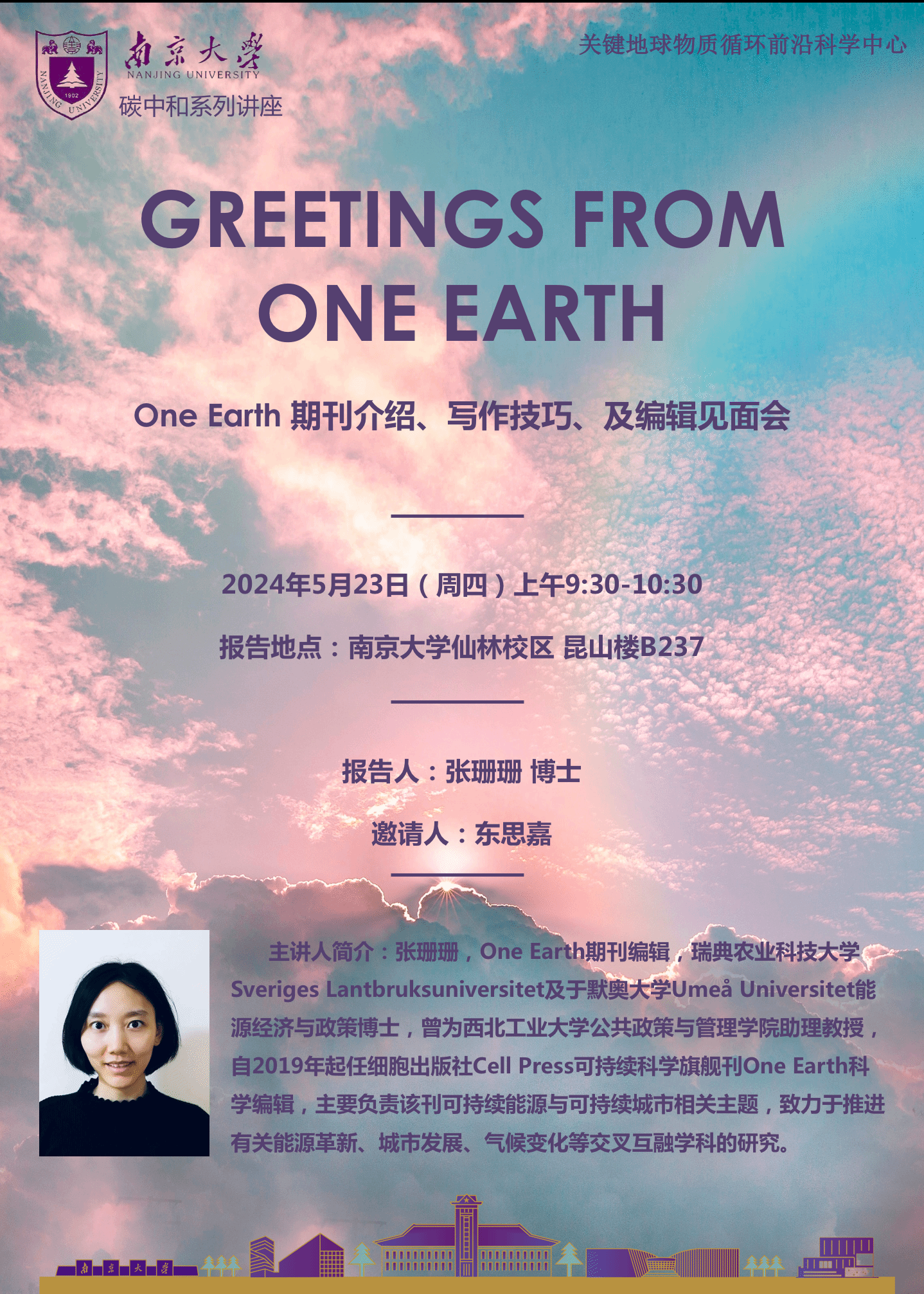 太阳成集团122ccvip碳中和系列讲座第3期——One Earth主编张珊珊博士