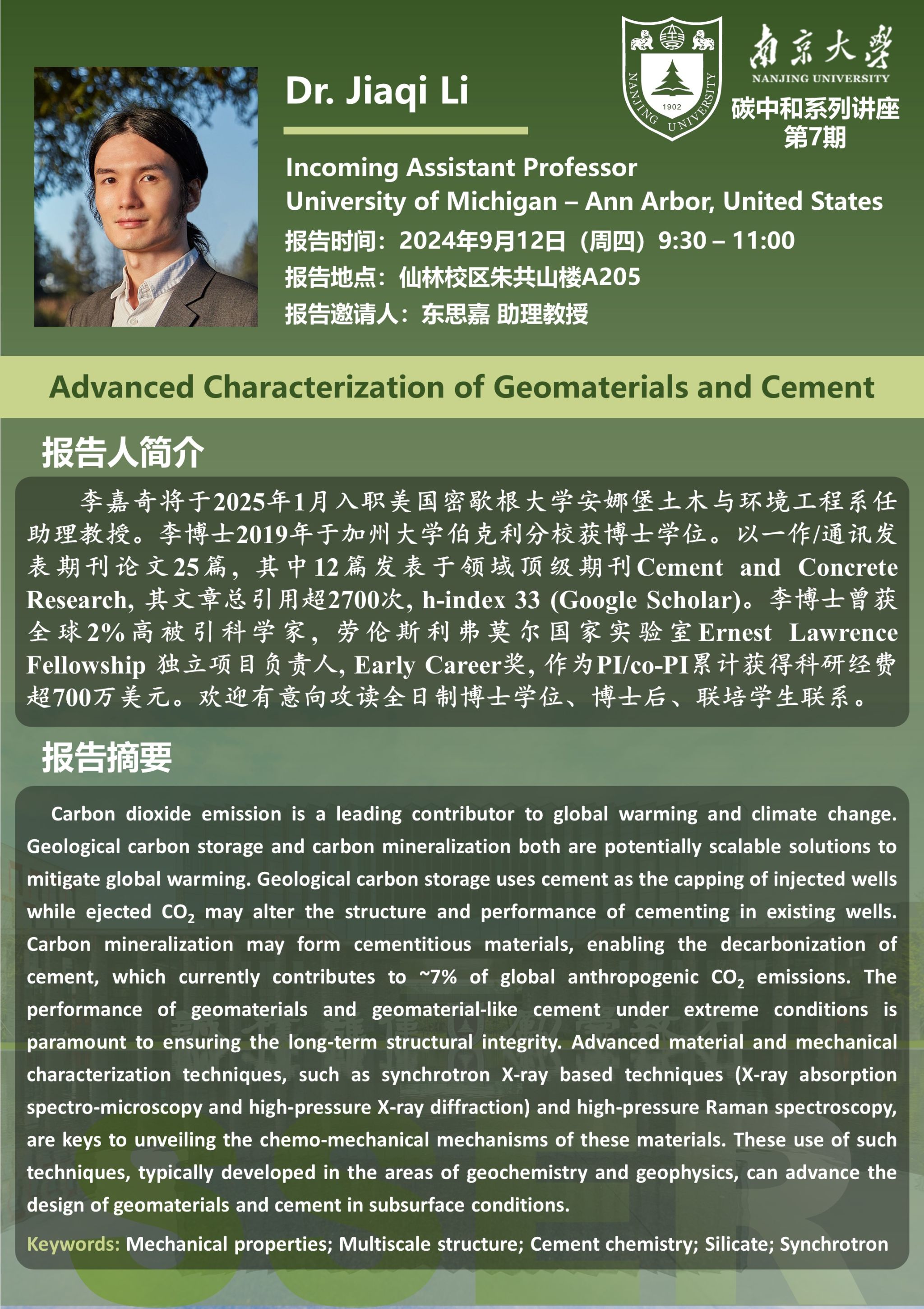 太阳成集团122ccvip碳中和系列讲座第7期——李嘉奇博士