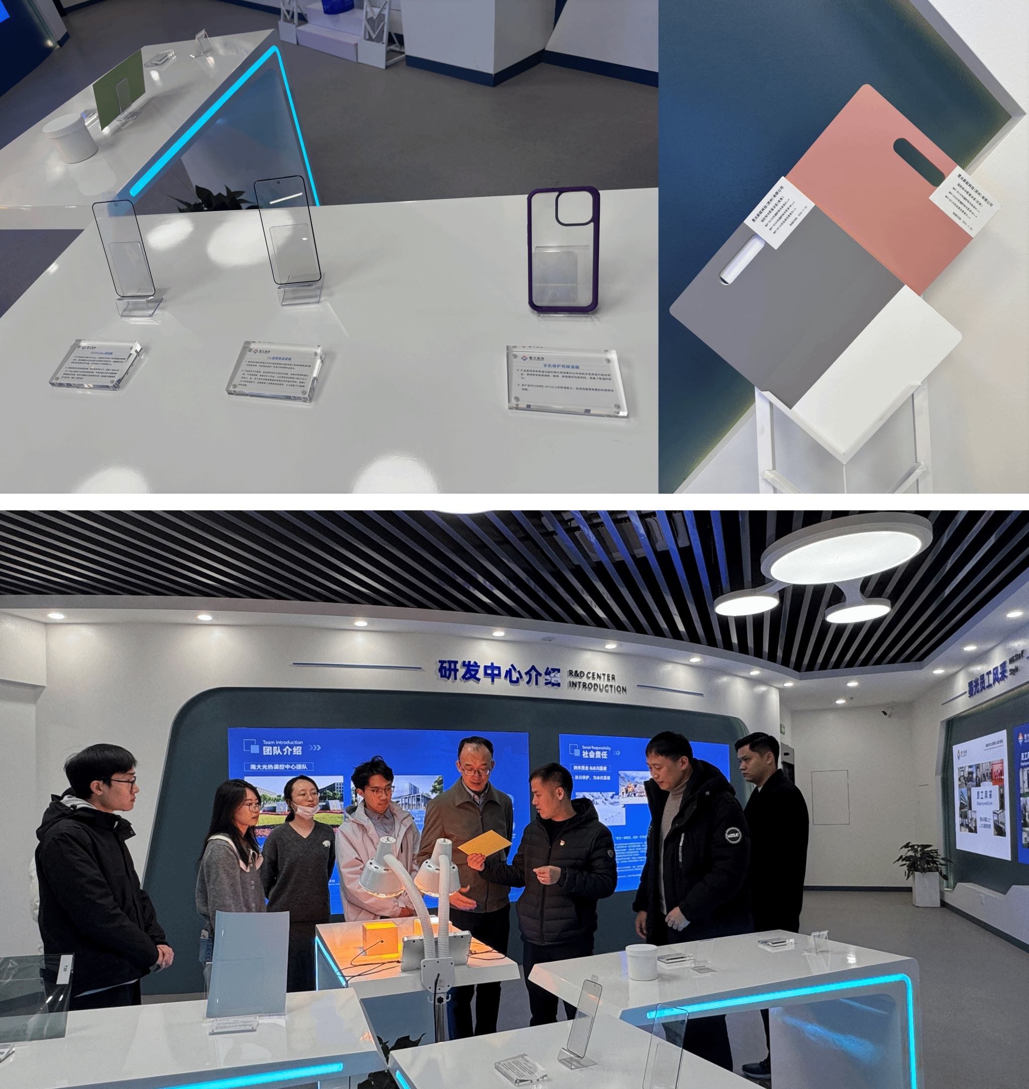 在产品展示区,一款款凝聚着科研智慧的企业自主研发产品吸引了众人的目光。从手机降温保护膜,到先进的辐射制冷涂料,公司相关负责人深入浅出地讲解着每一项产品的技术优势与应用场景,师生党员们不时提出专业问题,双方展开热烈探讨,现场学术氛围浓厚。师生党员们近距离接触到这些能够切实改变能源格局的高新技术成果,对书本上的知识有了更为直观、深刻的理解,也进一步明晰了未来科研攻关的方向。