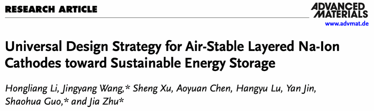H. Li, J. Wang, S. Xu, A. Chen, H. Lu, Y. Jin, S. Guo, J. Zhu, Universal Design Strategy for Air-Stable Layered Na-ion Cathodes towards Sustainable Energy Storage. Adv. Mater. 2024, 2403073.