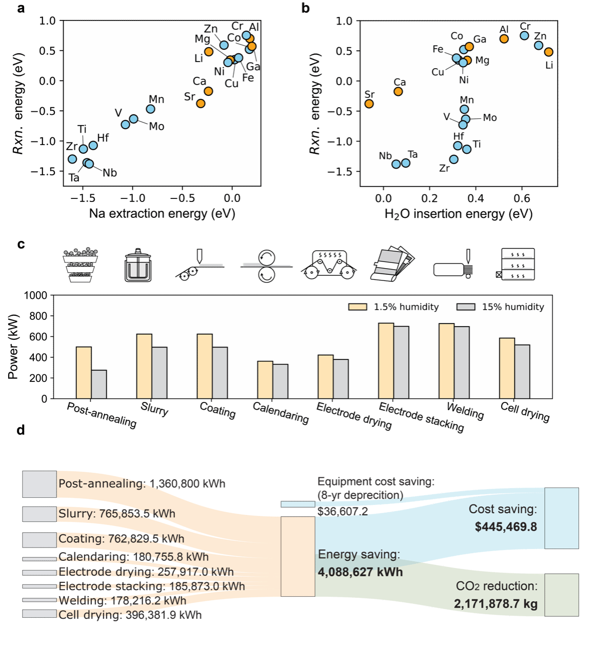 图3. 层状正极空气稳定性机制及大规模生产的能耗与碳足迹