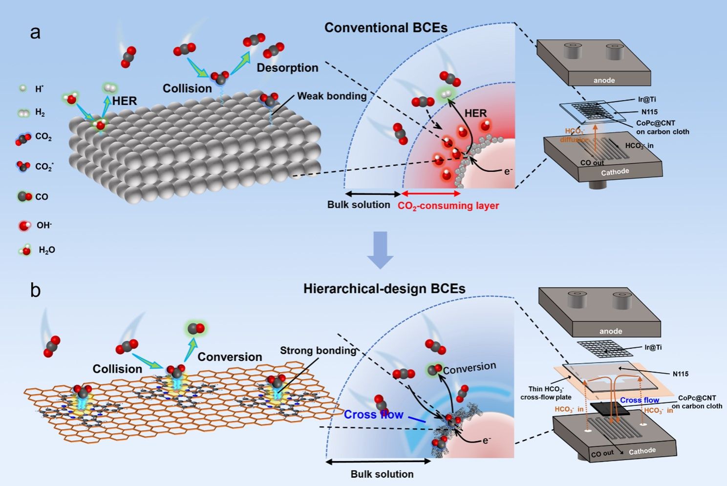 图3:分子级策略应用于传统碳酸氢盐电解槽(BCE)